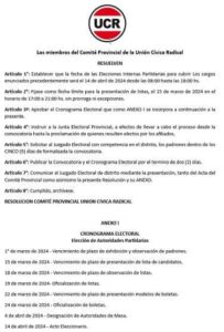 Cronograma electoral para la elección de autoridades partidarias.